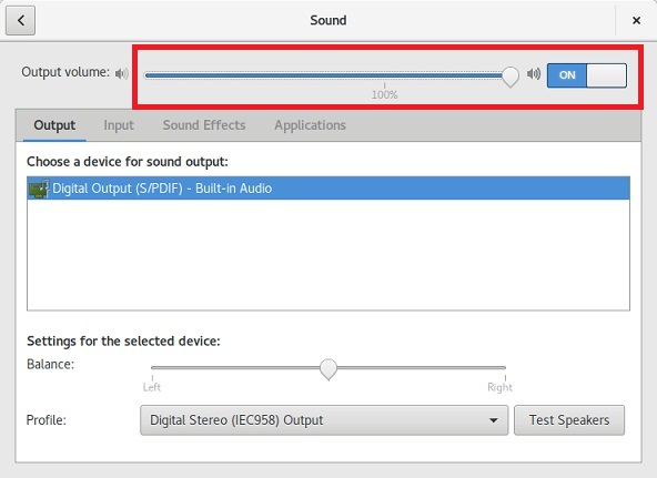 I then go to the sound settings of Ubuntu and crank up the volume to maximum value allowed. Actually, I crank it up to 140% of what’s allowed: